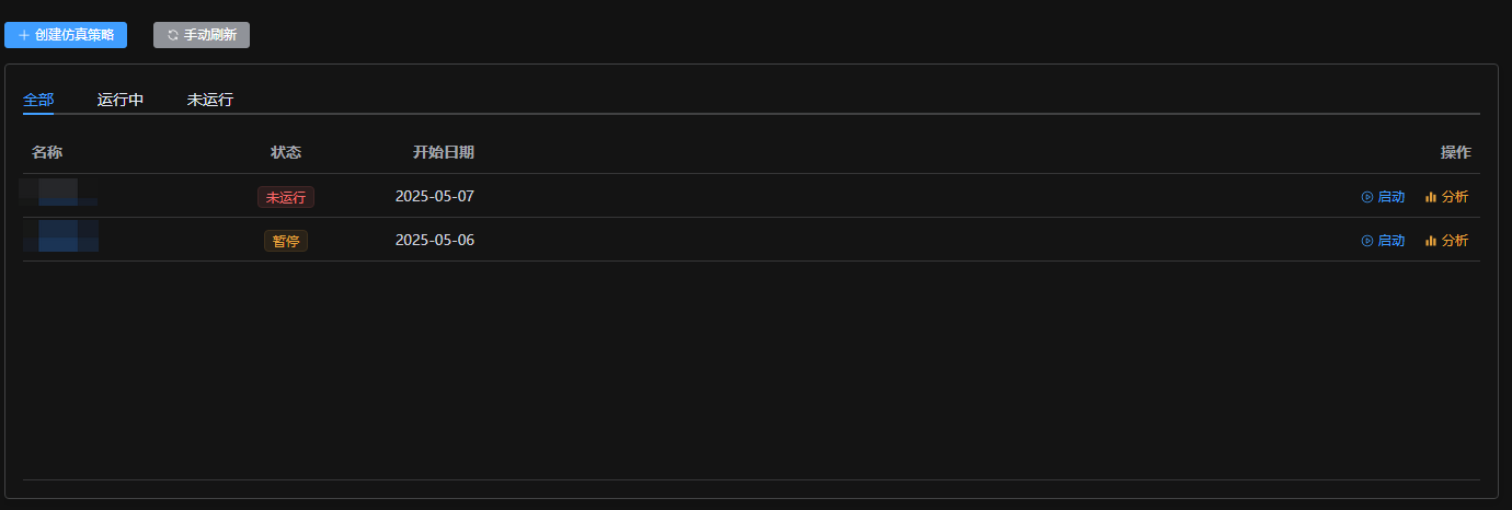 - 操作:包含策略启停、分析等功能入口